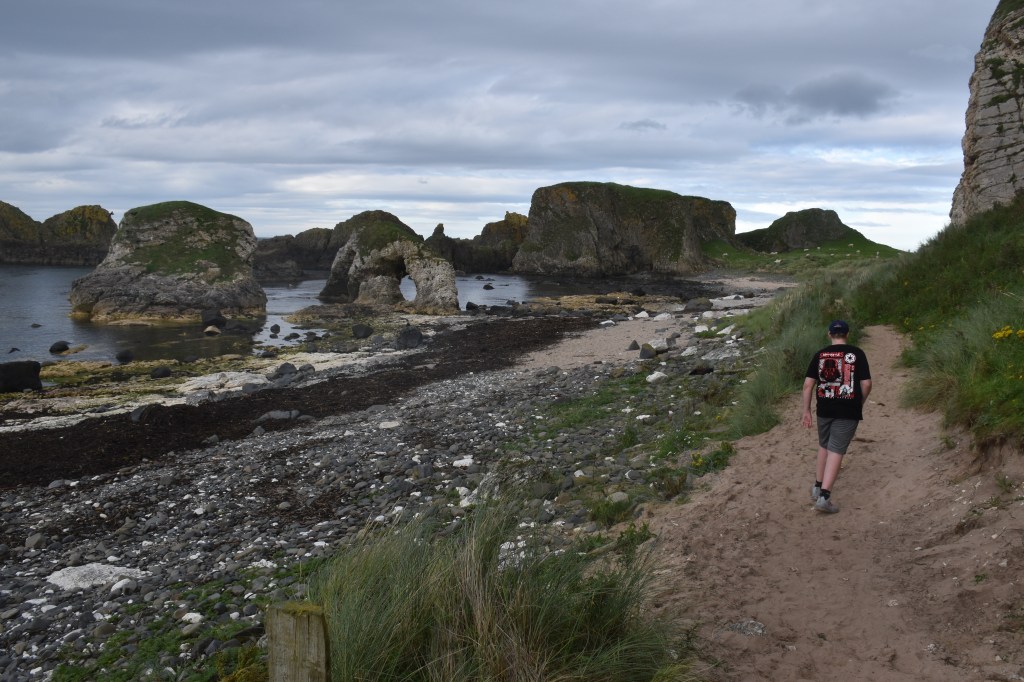 Walk 1: If you park up near the White Church of Ireland church (you can’t really miss it) there is a nice walk up along the top of the cliffs where you get a really good view of the ever-eroding limestone and on a good day you will get the best view of Sheep Island and over onto Rathlin Island. If you keep going on long enough you will get round to Carrick-a-rede rope bridge. When you come back – I recommend the Red Door Cafe for a quick stop – especially their Irish Stew or Seafood Chowder.