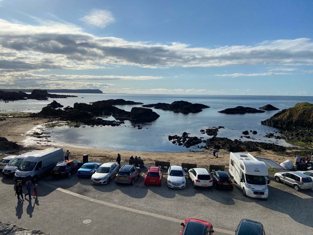 One of the things I used to love to do was to bring school groups. We would get the school bus to leave us at the White church and we would walk down the twisty road, stop at the ‘wee beach’, eat our lunch on top of the Lime Kiln in the car park and then make our way round past the fossil beach to the Elephant beach and finish off with a brisk walk along Whitepark Bay until the rather tiring climb up into the car park where the bus driver would be waiting for us. You can do something similar if you time your trip with the timings for the Translink Causeway Rambler.